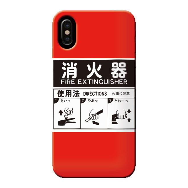 街中でよく見かける消火器の使い方が大きく描かれたこちらのスマホケース。