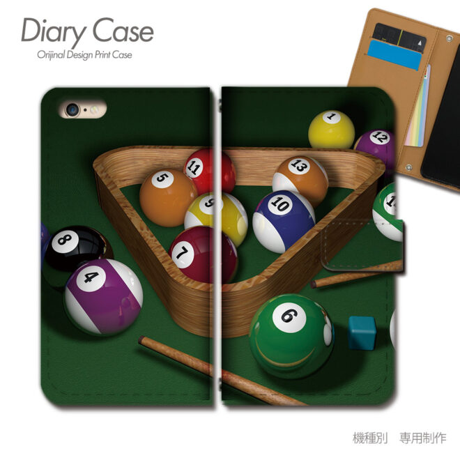 ビリヤードのロマンチックな風景が描かれたこちらのスマホケース。