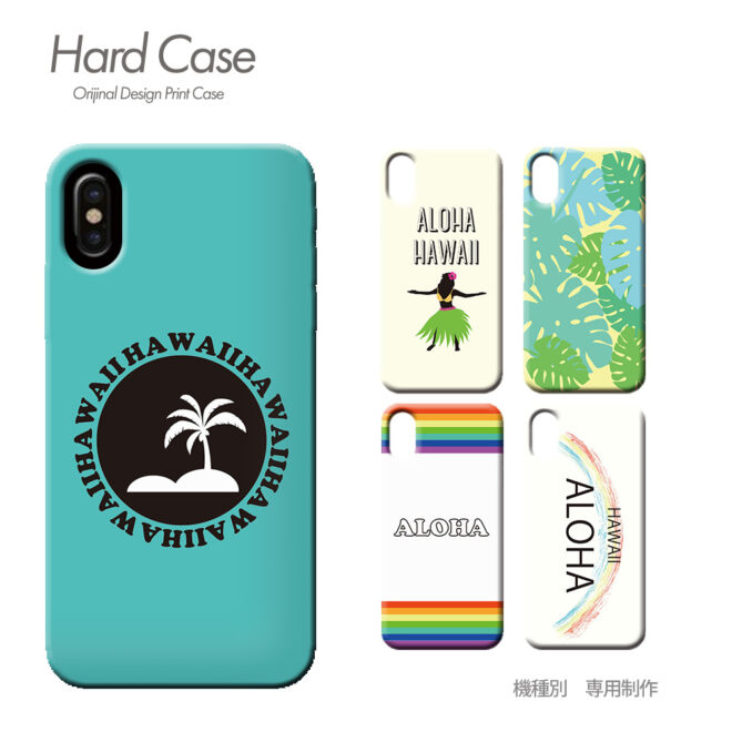 水色の背景に「HAWAII」の文字、そしてヤシの木のイラストと、ポップな色合いではあるもののシンプルなデザインとなっています。